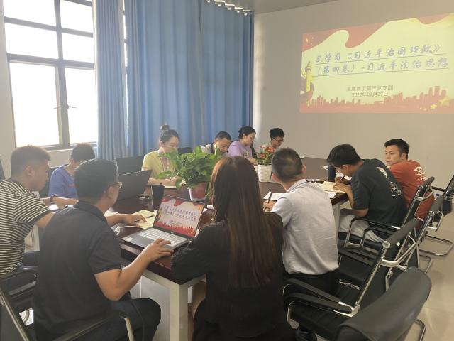 为深入学习贯彻习近平新时代中国特色社会主义思想,宣讲新时代党的创新理论,9月29日,直属三支部在笃行楼320室集中学习《习近平谈治国理政》第四卷——习近平法治思想,院党委副书记杨欢出席,会议由党支部书记钟根佐主持,支部全体成员参加。