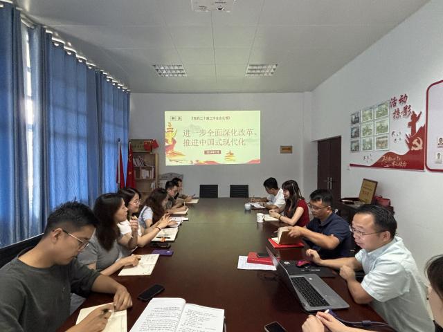 9月12日上午,直属教工第三党支部在笃行楼E320会议室围绕党的二十届三中全会精神开展党课学习,党课由党支部书记钟根佐主讲,全体党员参加。