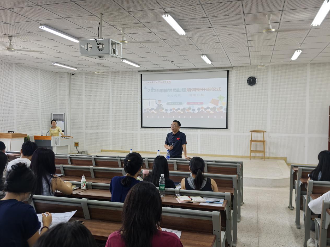 为培养一支新时代“引路人”队伍,有效保障辅导员助理队伍的综合素质,促进学生管理工作的有序开展,让2025级新生尽快适应大学生活、体验大学生活、感悟大学生活。我校于2025年8月31日举行2025级新生辅导员助理培训开班仪式。