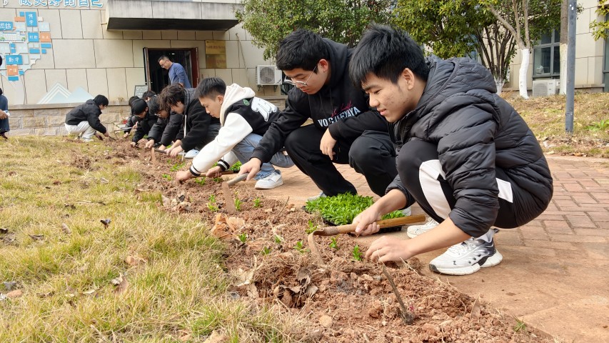 12月18日下午,心理健康教育中心与荷塘景园基地联合组织花苗移栽活动,学生们手持小铲,在荷塘景园基地专业老师的指导下,亲手将一株株花苗移入新土。