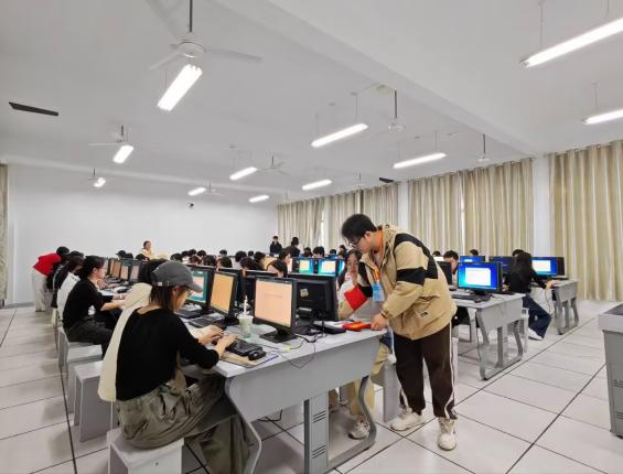 为确保活动平稳落地,学工处提前统筹部署,构建全面保障体系。一方面,组织全体工作人员开展专项培训,系统讲解操作流程及巡查规范。同时,为帮助新生全面了解校园规则与文化底蕴,活动设置理论教育环节,通过资料学习等形式,向新生深入普及校规校纪、校史校情等核心内容,为后续测试及校园生活奠定理论基础。活动开展当天,现场保障机制同步启动。图书馆岳宗发老师、学工处负责老师及校大学生事务中心工作人员组成专项巡查小组,全程坚守巡查一线,实时关注测试进展。针对新生在设备调试、系统操作中遇到的各类问题,工作人员第一时间响应、高效解决,全力保障测试过程的规范有序与公平公正。