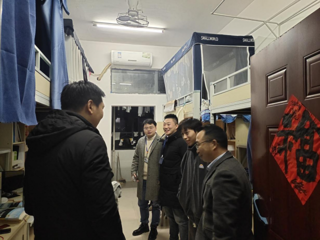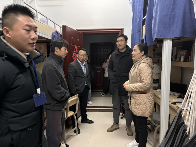 寒冬腊月,为深入了解在校学生入冬后学习、生活、安全情况,传递学院人文关怀。12月26日晚,院党委书记黎敏、院党委副书记李海峰在院学生工作处相关工作人员的陪同下,深入学生社区一线,走访调研学生宿舍,给寒冬中的学子送去了一份温暖与关怀。